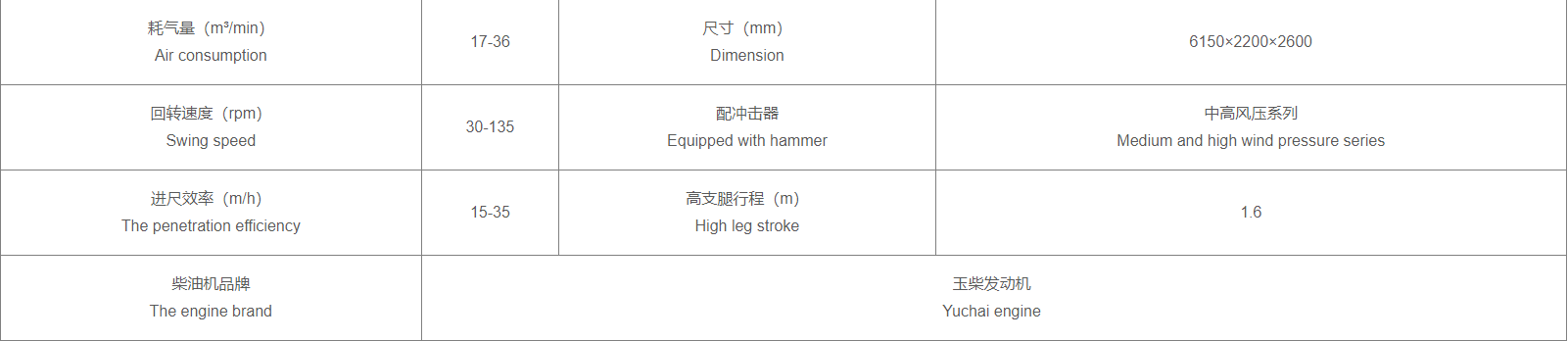3、本机采用大扭矩液压马达动力头和品牌柴油,液压控制系统采用大直径液压缸。品牌柴油有2级空气过滤系统保护,也可以直接使用空气压缩机的清洁空气。