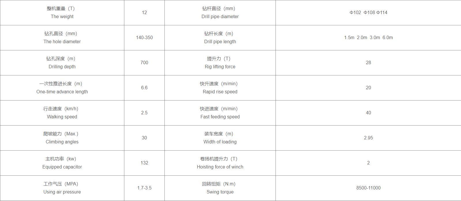 5.钻孔直径大,钻孔深,推进速度快