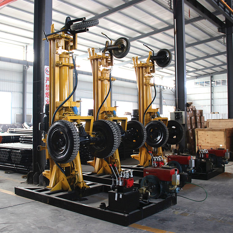 适用于民用和工业钻探、地热钻探,具有直径大、钻深、钻进快、移动灵活、适用范围广等优点。 特点: 1.安全稳定的行走系统 2.强劲可靠的发动机 3.多角度操作,小巧易操作 4.多用途:适用于钻井和工程施工,广泛用于工程、民用钻井,地热钻井。 5.质量好:具有配置标准化、结构紧凑、故障率低的特点。 5.效率高:节省人力,钻孔速度快。 6.电机:可与11Kw电机配套使用,可配置空压机。