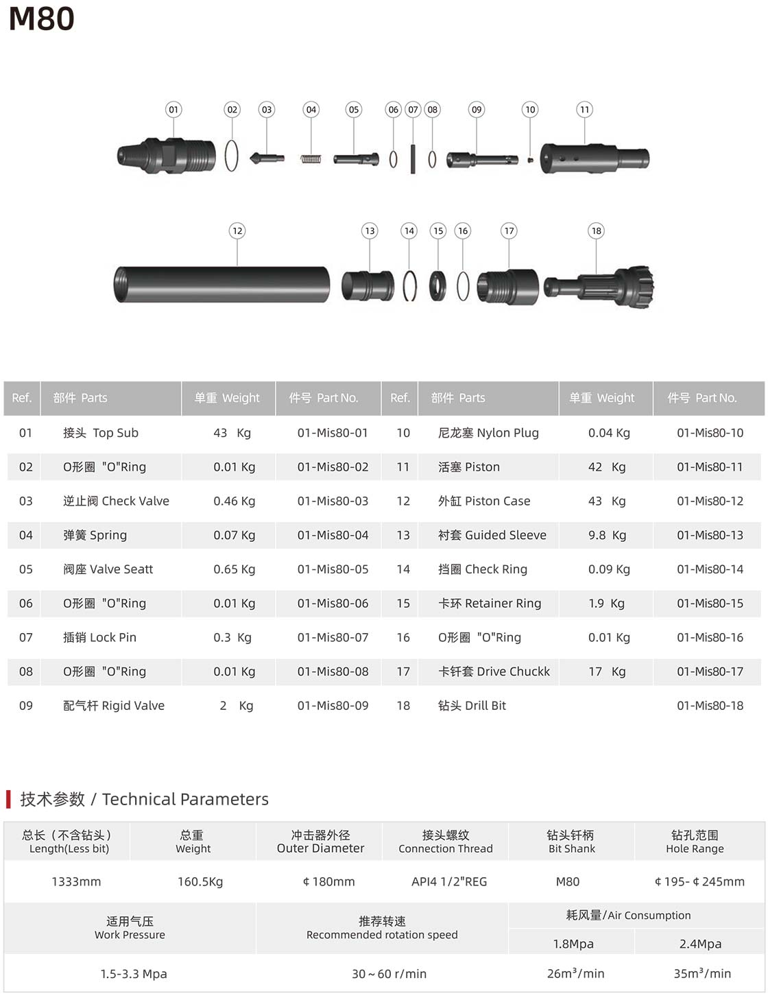 02、有质量问题的产品,请先仔细辨认是否我公司产品方可返回,辨认方法:我公司的钻头、活塞、内缸、接头都印有编号: