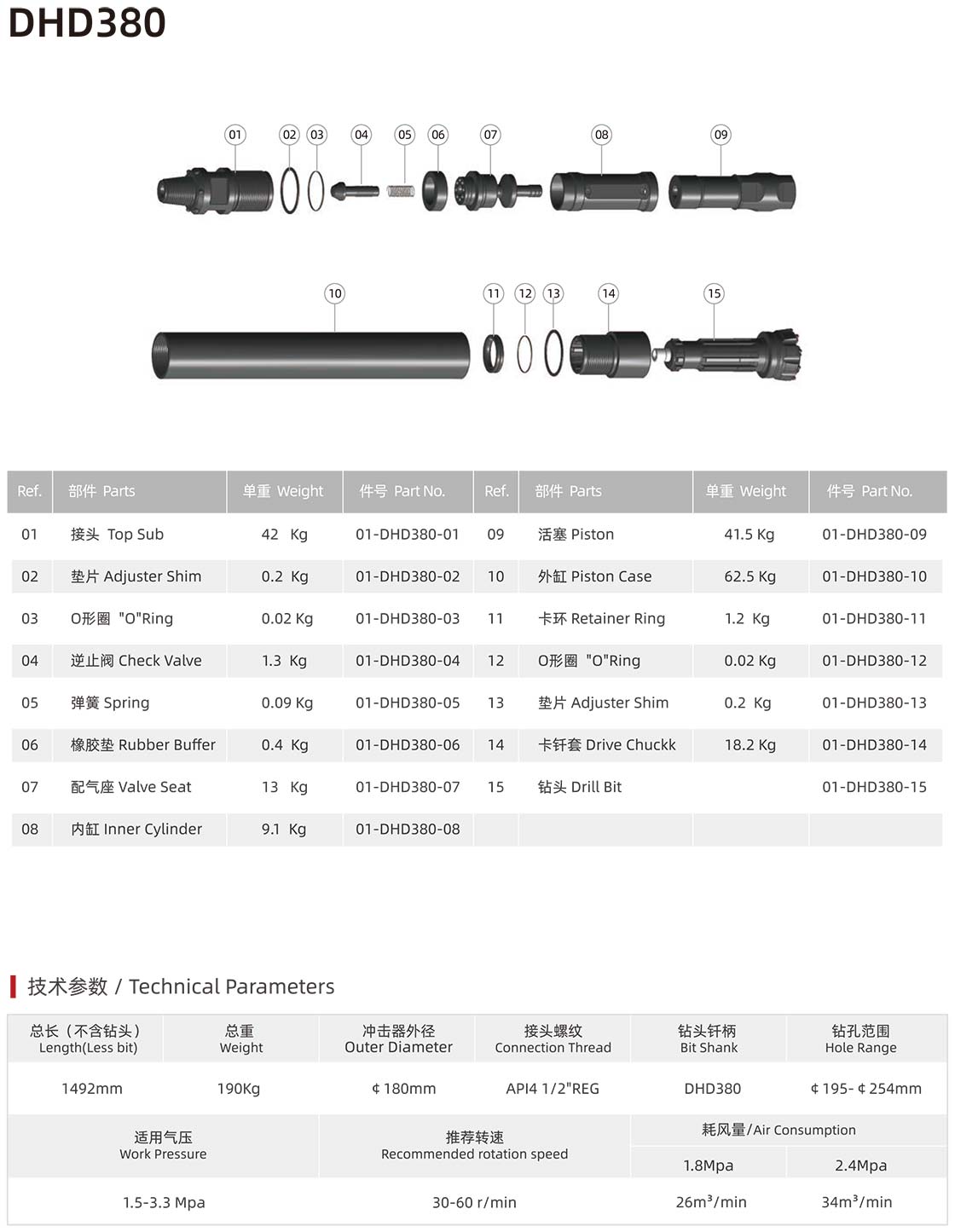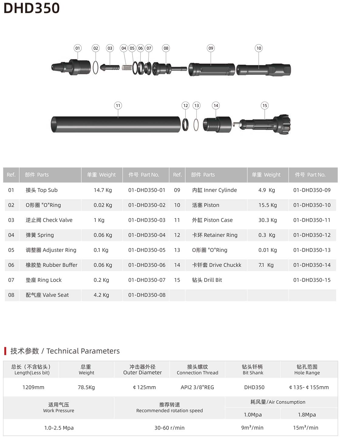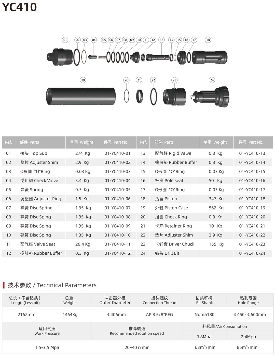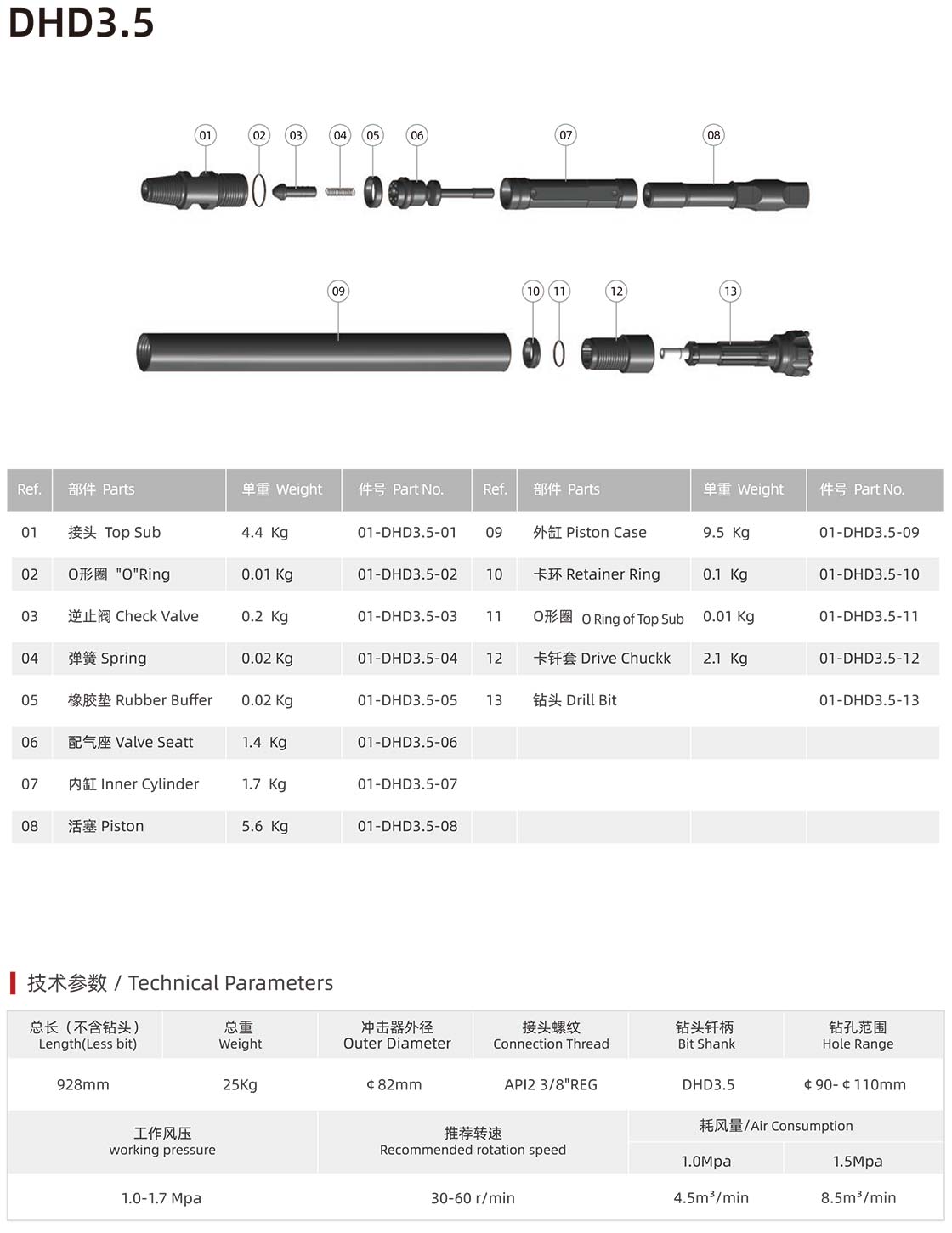 02、有质量问题的产品,请先仔细辨认是否我公司产品方可返回,辨认方法:我公司的钻头、活塞、内缸、接头都印有编号: