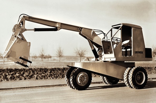 汉斯·利勃海尔在1953年租了一台电缆挖掘机,他注意到功率重量比很低。八个月后,他展示了欧洲第一台液压挖掘机—L300。这比租用机器轻了四倍。1954年,强力机开始批量生产。